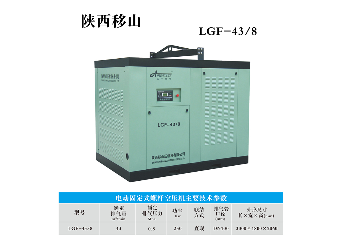 43立方8公斤250千瓦电动固定螺杆空压机